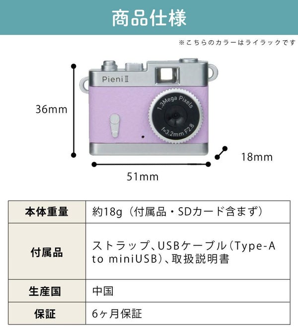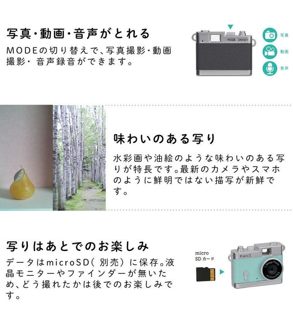 「PieniII」はクラシックカメラ風デザインがかわいい、超小型のトイデジタルカメラです。