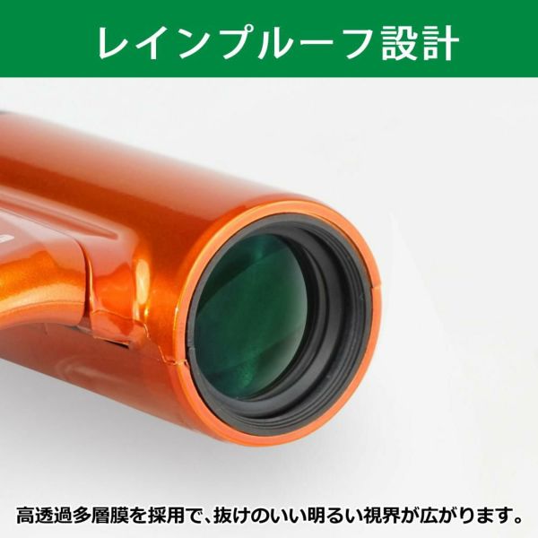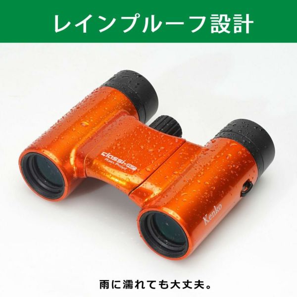 ボディーはレインプルーフ設計で突然の雨に濡れても安心です。レンズにはマルチコートを施し、 抜けのいい明るい視界が広がります。さらに色の再現性が高く、クリアできれいな像が楽しめます。