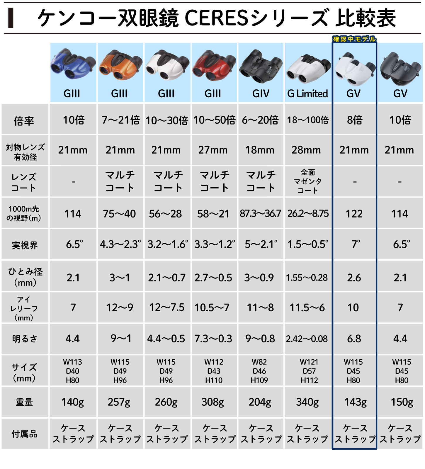 ケンコー 双眼鏡 8倍 セレス CERES GV 8X21 ホワイト