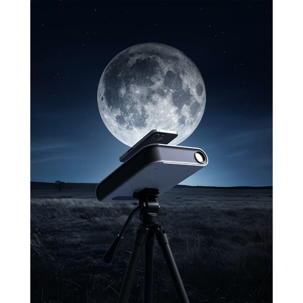 Hestiaは、スマートフォンで太陽や月などの天体を観測・撮影するための革新的な光学システムです。スマートフォンを装着すると、内蔵された光学系により像を25倍に拡大。月や太陽など、天体のディテールまで鮮明にとらえて写すことができます。