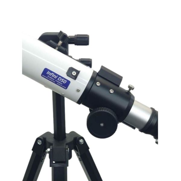 infini D50(インフィニ ディー50)は、口径50mm・焦点距離540mmのアクロマート屈折式望遠鏡に、扱いやすい経緯台式Mini AZマウント、2本の接眼レンズなどを組み合わせた天体望遠鏡セットです。初心者でも安心して使える工夫を随所に盛り込みつつ、細部までこだわった“本格派の入門機”として開発されました。その性能と描写力の高さはベテランの方にもご満足いただける仕上がりで、初めて天体望遠鏡に触れる方にも自信をもっておすすめできる一台です。