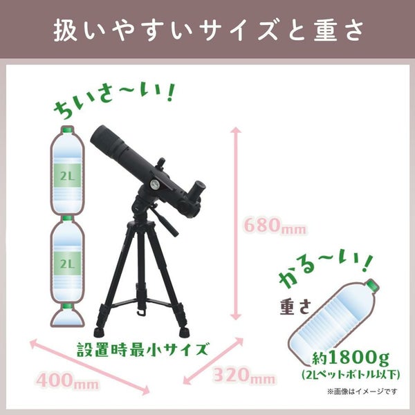 | その他 | 気泡式水準器搭載(台座、雲台) 写真撮影不可・太陽観察不可 |
