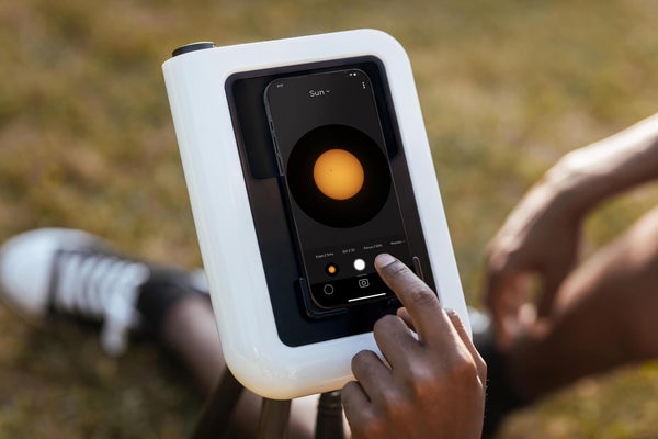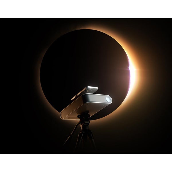 Hestiaは、スマートフォンで太陽や月などの天体を観測・撮影するための革新的な光学システムです。スマートフォンを装着すると、内蔵された光学系により像を25倍に拡大。月や太陽など、天体のディテールまで鮮明にとらえて写すことができます。