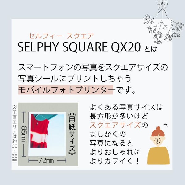 セルフィースクエア QX20 ( セルフィー スクエア キューエックス20 )は、スマホ専用(タブレット専用)の フォトプリンターです。