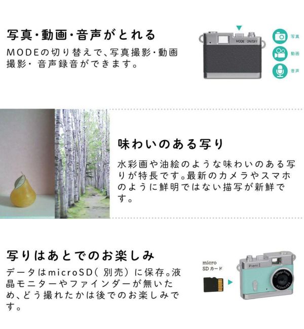 「PieniII」はクラシックカメラ風デザインがかわいい、超小型のトイデジタルカメラです。