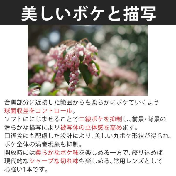 口径食にも配慮した設計で、美しい円形のボケを提供します。
