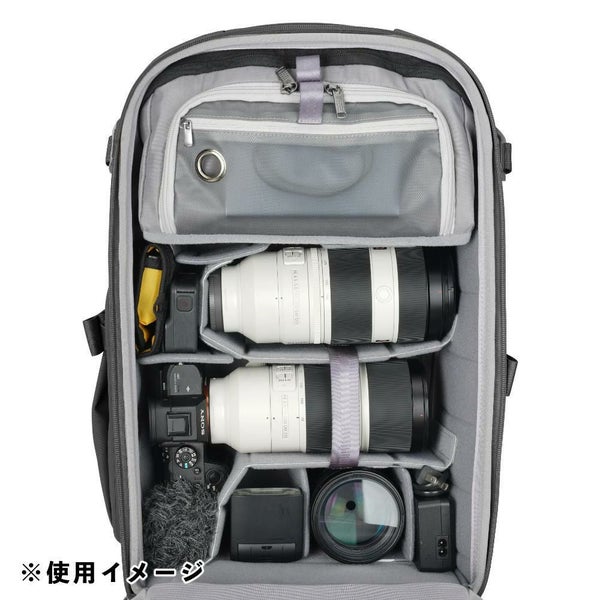 | 主な用途 | フルサイズ一眼レフ & ミラーレス + レンズ5本収納可能 |