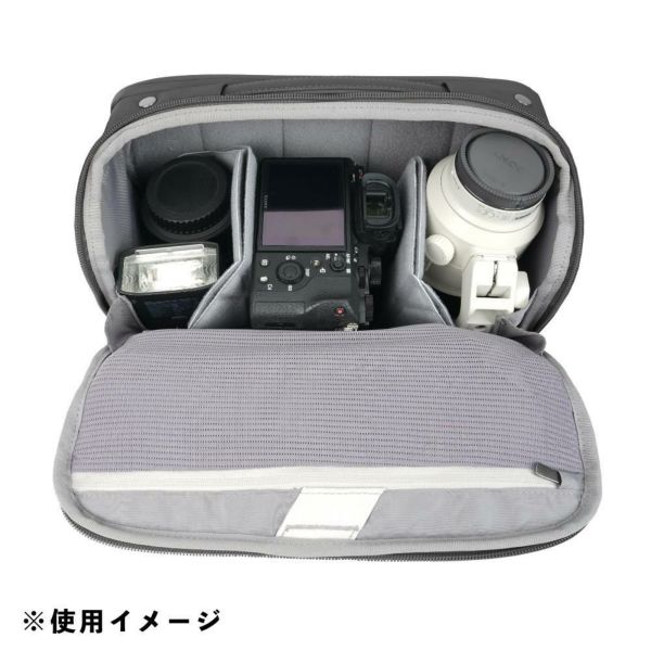 | 収納イメージ | ・高さ約120mmのカメラ本体 ・追加で2本のレンズ ・11インチまでのタブレット(iPad / iPad Pro) ・トラベル三脚、アクセサリー類 |