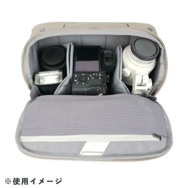 | 収納イメージ | ・高さ約120mmのカメラ本体 ・追加で2本のレンズ ・11インチまでのタブレット(iPad / iPad Pro) ・トラベル三脚、アクセサリー類 |