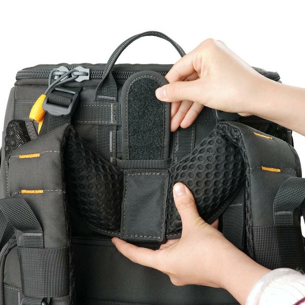 1200mm F8を含む大型望遠レンズや、最大4本のレンズ、17インチノートパソコン、ドローン、ジンバルなど幅広い機材に対応し、シリーズ最大級の収納力を誇ります。三脚やライトスタンドの取り付けにも対応し、ロケや遠征にも最適です。