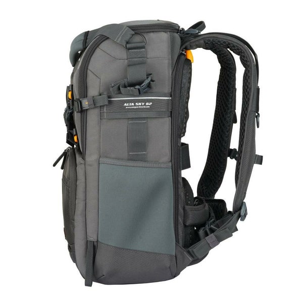 ALTA SKY 62は、24リットルの実用的なバックパックで、特に200-600mm f5.6-6.3の超望遠レンズが装着された一眼レフカメラやフルフレームミラーレスカメラを持ち運ぶために設計されています。さらに、最大6つのレンズや日用品、そして16インチのノートパソコンと11インチのタブレットも収納可能です。