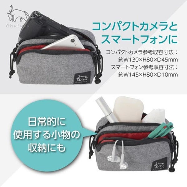コンパクトカメラやスマートフォンのほか、日常的に使用する小物を収納するのにも便利な、