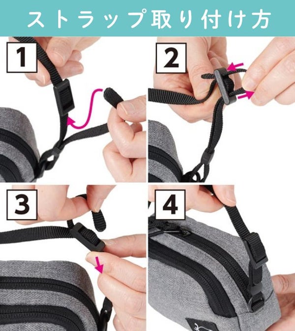 お好みのスタイルに合わせて長さ調節が可能なストラップ付きです。