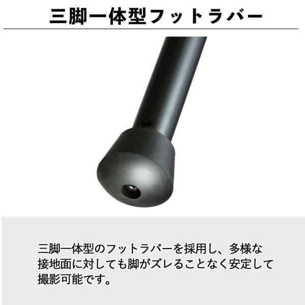 三脚一体型のフットラバーを採用し、多様な接地面に対しても脚がズレることなく安定して撮影可能です。