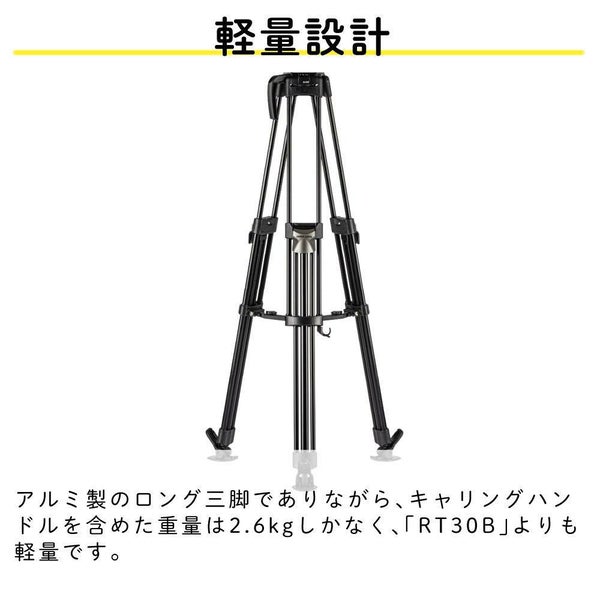 アルミ製のロング三脚でありながら、キャリングハンドルを含めた重量は2.6kgしかなく、「RT30B」よりも軽量です。