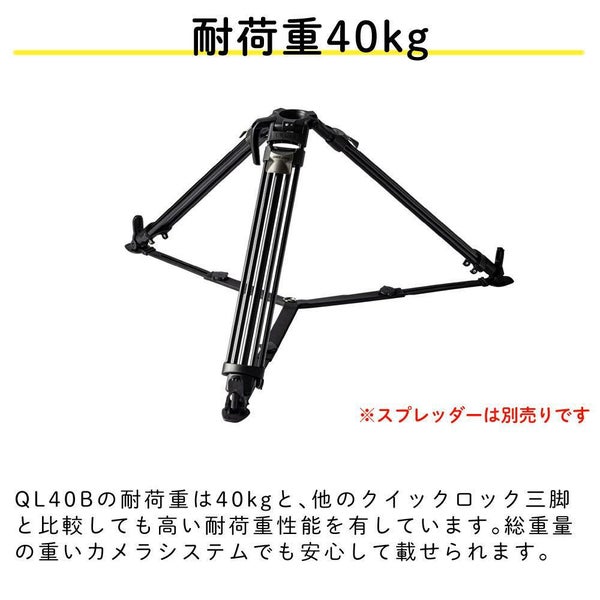 QL40Bの耐荷重は40kgと、他のクイックロック三脚と比較しても高い耐荷重性能を有しています。総重量の重いカメラシステムでも安心して載せられます。