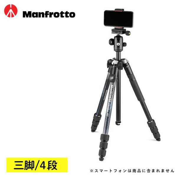 ●マンフロット Element MII アルミニウム4段三脚MBTキットBKは、カメラだけでなくスマートフォンでの撮影にも対応したトラベル三脚キットです。