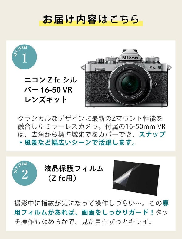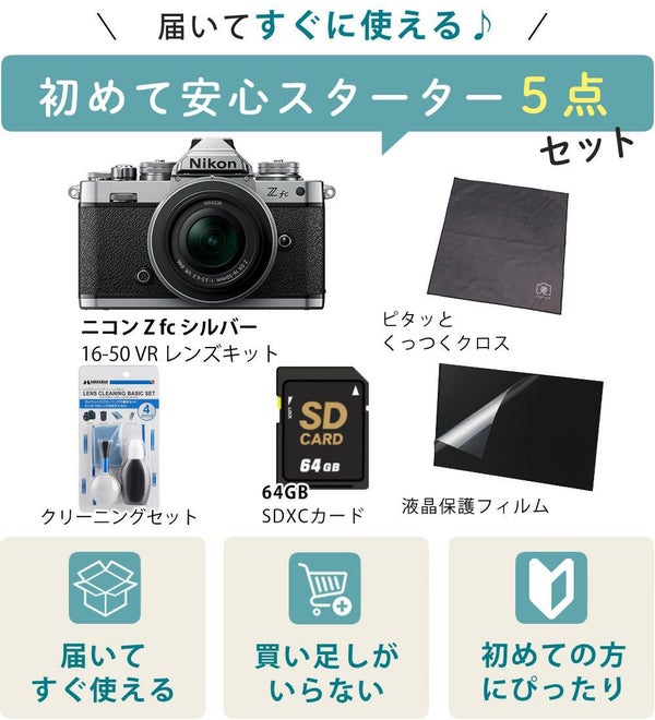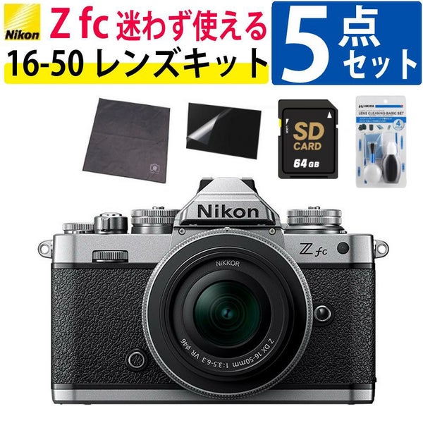 APS-Cサイズミラーレスカメラ「ニコンZ fc」 ニコン Nikon ミラーレス一眼カメラ Z fc 16-50 VR レンズキット シルバー APS-C (ベーシック5点セット)(ラッピング不可)