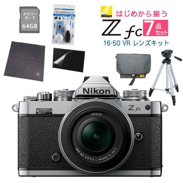 APS-Cサイズミラーレスカメラ「ニコンZ fc」 ニコン Nikon ミラーレス一眼カメラ Z fc 16-50 VR レンズキット シルバー 2088万画素 (ベーシックセット&三脚&バッグ)(ラッピング不可)