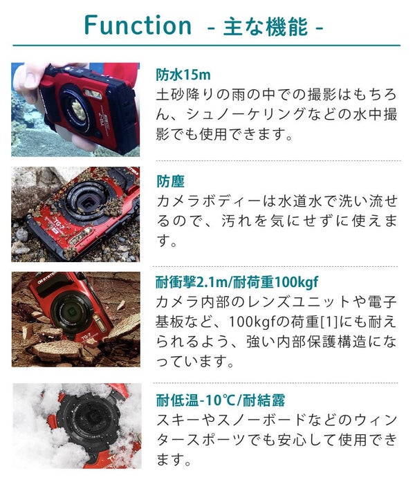 山や海、岩場、雪の中など、どんな過酷な状況でも高画質な撮影を実現できるタフカメラです。