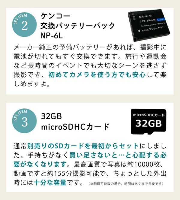 | 2)ケンコー 交換バッテリーパック NP-6L |