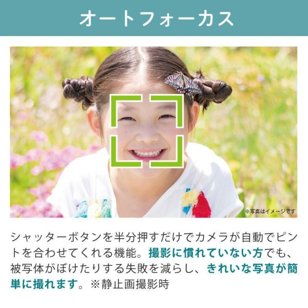 セルフタイマー機能付きで、友人・家族との記念撮影、自分撮りに便利です。
