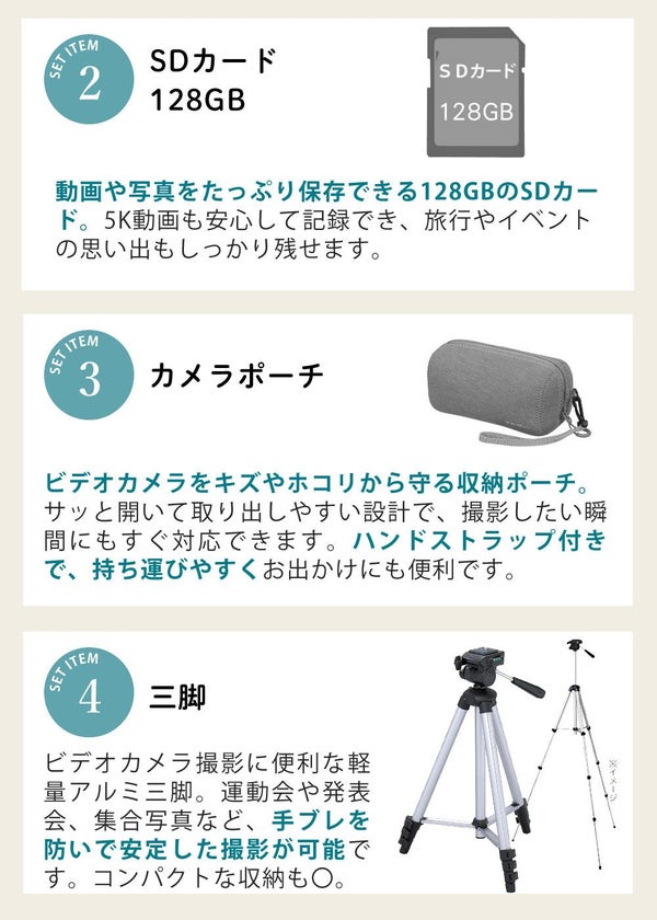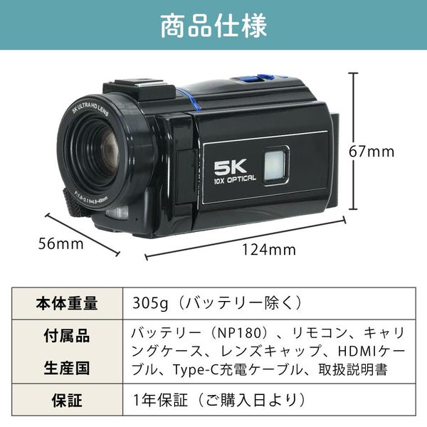| 動画解像度設定 | 5K/24fps , 4K/30fps , WQHD/30fps , FHD/60fps , FHD/30fps , HD/120fps , HD/30fps |
