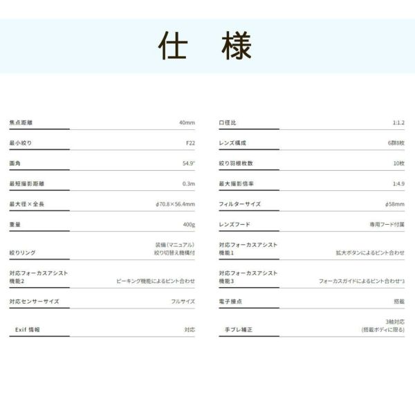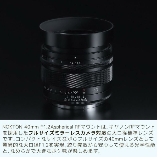 NOKTON 40mm F1.2Aspherical RFマウントは、キヤノンRF マウントを採用したフルサイズミラーレスカメラ対応の大口径標準レンズです。