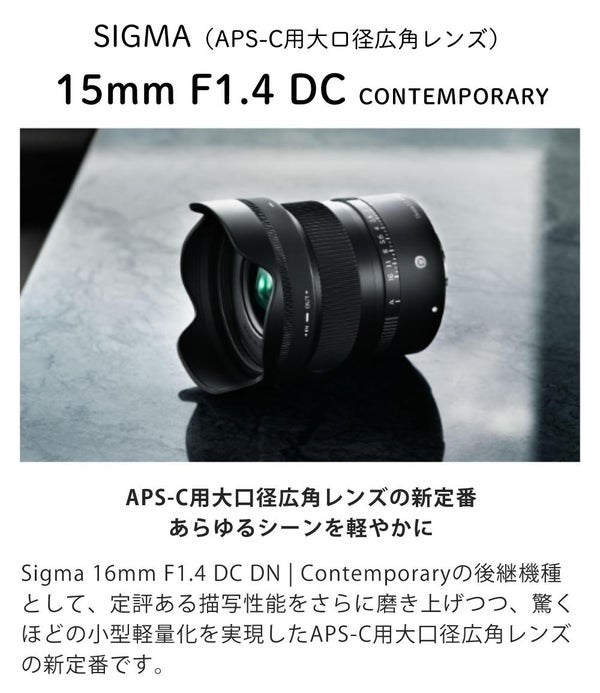 1)Sigma シグマ 15mm F/1.4 DC(C)ソニーEマウント用