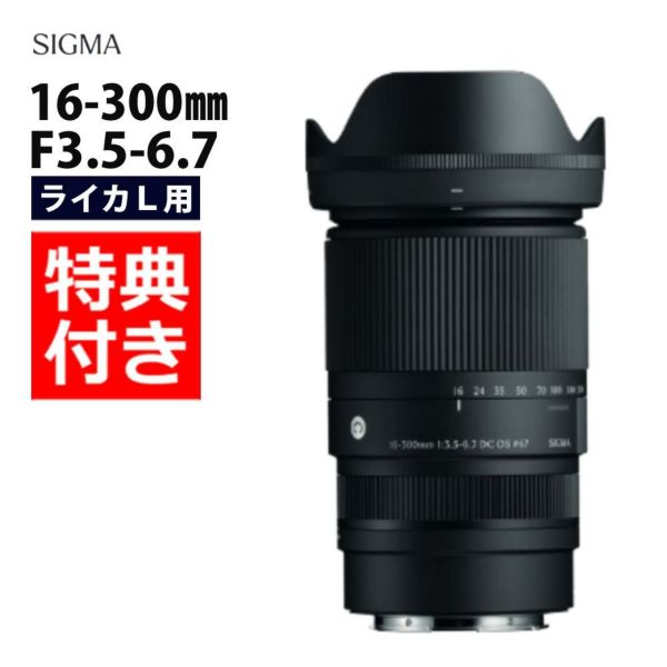 焦点距離70mm で 最大撮影倍率1:2 の マクロ撮影 ズームロックスイッチ フレア ゴースト抑制 フォーカスブリージング低減設計 動画撮影 に最適 高屈折率ガラス 非球面レンズ で 高画質 (レビューでプレゼント) バッグ付き シグマ 16-300mm F3.5-6.7 DC OS(C) ライカLマウント用