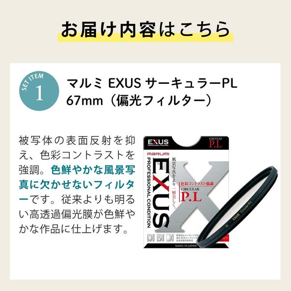 1)マルミ EXUS サーキュラーPL 67mm(偏光フィルター)