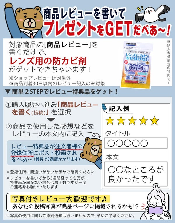 レンズに触れて汚れてしまっても、汚れが付きづらく指紋汚れも簡単に拭き取れます。