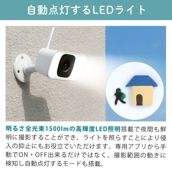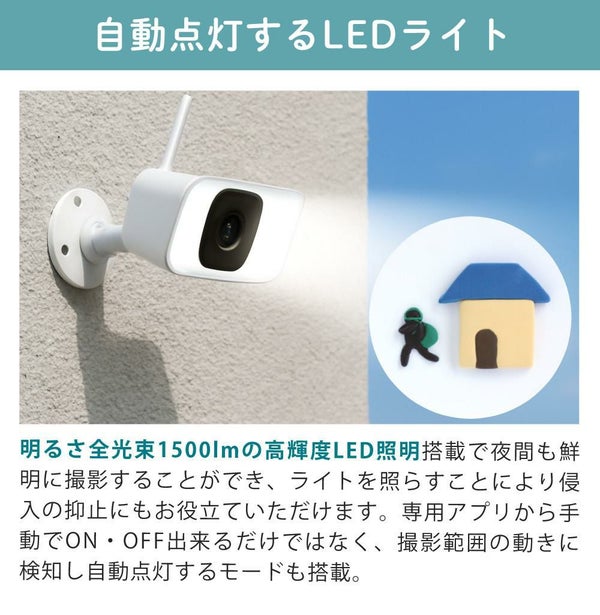 ライト 威嚇 サイレン音 カメラ会話 暮らし みまもる 見守る スマホ パッド 操作 画像 録画 自動 追尾 高画質 300万画素