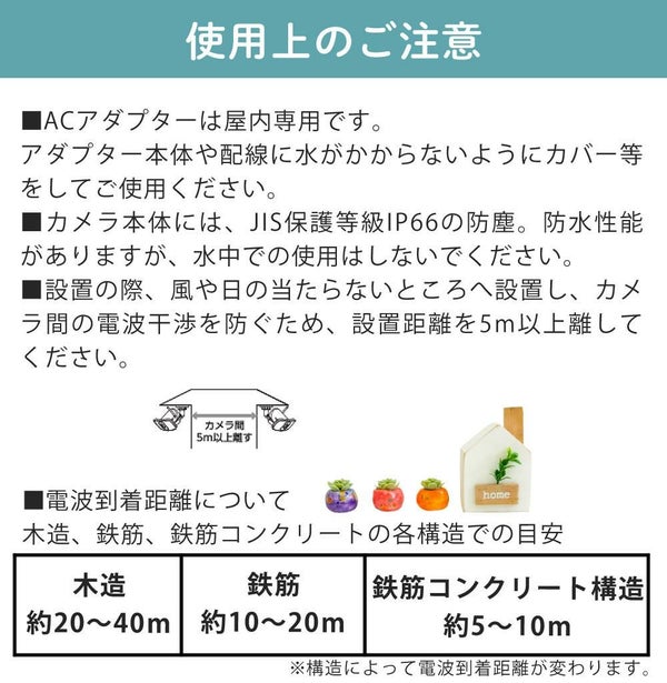 ※遠隔確認・録画映像の確認にはカメラ設置場所と外出先の両方にインターネット接続環境が必要です。