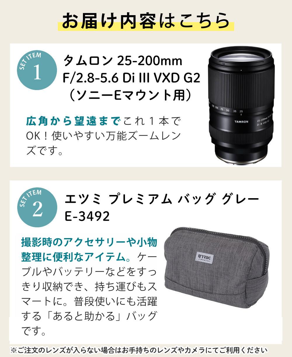 他の画像を見る タムロン 25-200mm F/2.8-5.6 Di III VXD G2 ソニーEマウント用 A075S カメラバッグ付き セット 販売価格 ¥ 116,892 税込 カートに入れる お気に入りに登録する (0件)