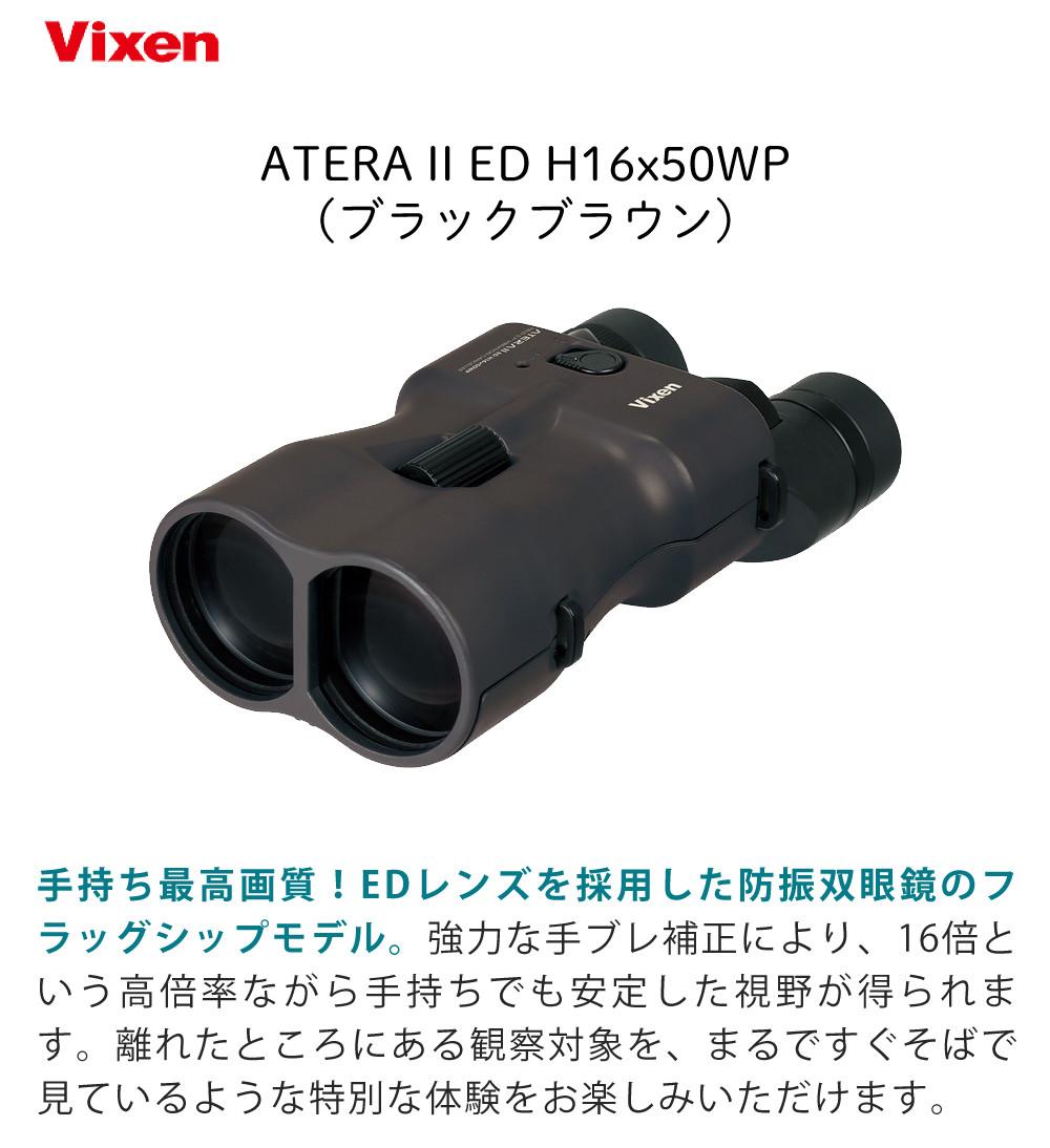 他の画像を見る 手持ち最高画質!EDレンズを採用した防振双眼鏡のフラッグシップモデル! ビクセン 防振双眼鏡 ATERA II ED H16x50WP ブラックブラウン 販売価格 ¥ 144,000 税込 カートに入れる お気に入りに登録する (0件)
