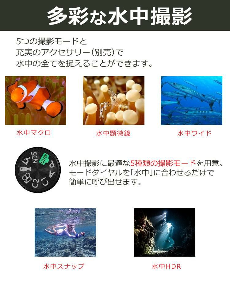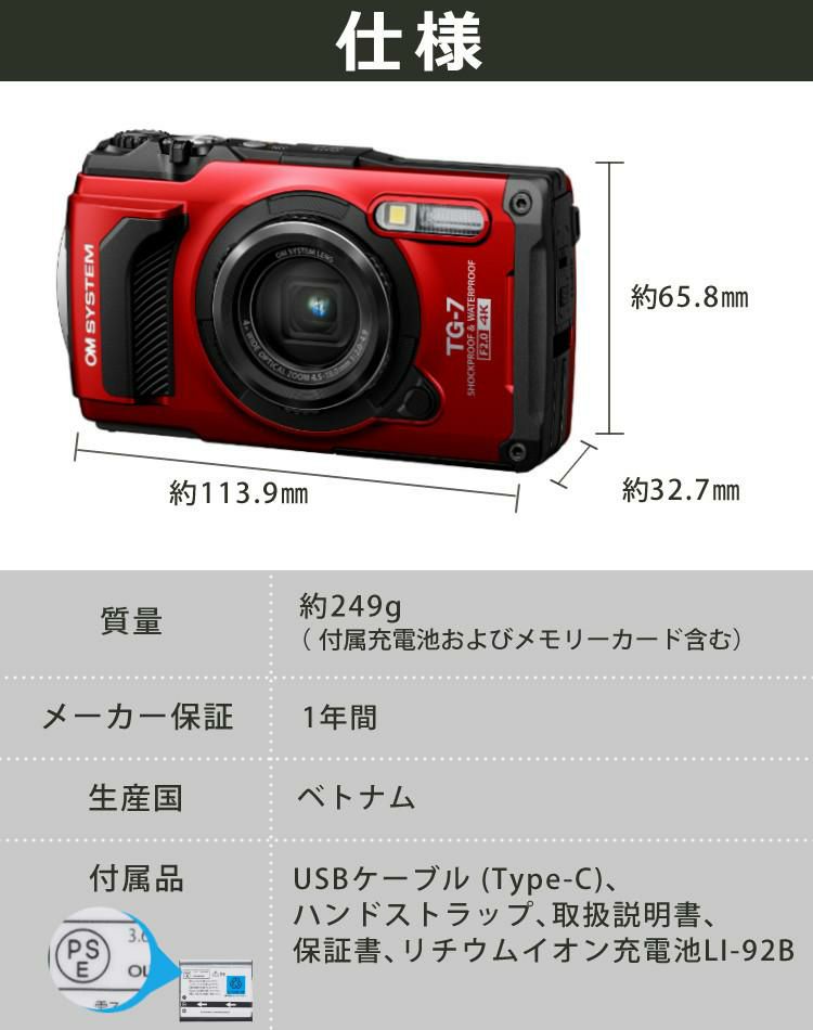 他の画像を見る OM SYSTEM Tough TG-7 (オリンパス)すぐに使える便利な6点セット 防水 防塵 タフ性能 ダイビング カメラ OM SYSTEM Tough TG-7 デジタルカメラ ブラック レッド 防水プロテクター他 7点セット 販売価格 ¥ 106,600 税込 カートに入れる お気に入りに登録する (0件)