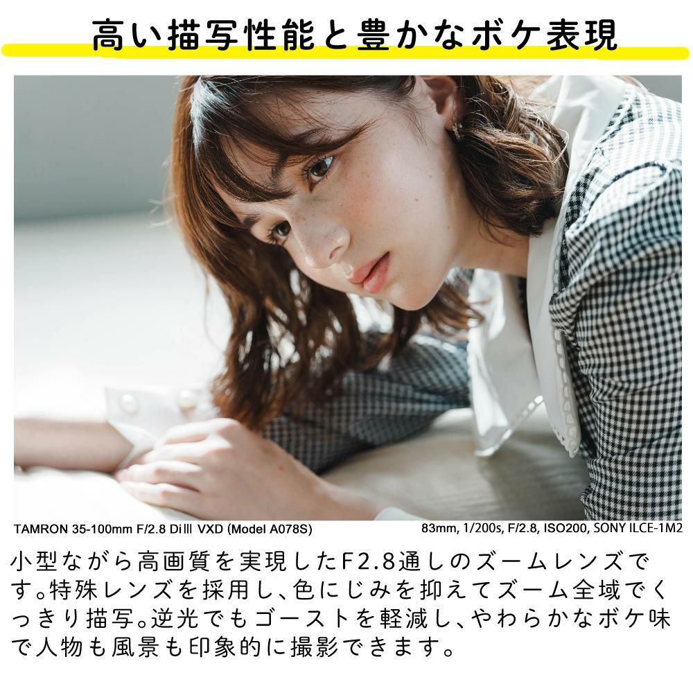 他の画像を見る (3月26日発売)(予約特典)タムロン 35-100mm F/2.8 Di III VXD ソニーEマウント用 (Model A078S)カメラバッグ付き セット 販売価格 ¥ 135,875 税込 カートに入れる お気に入りに登録する (0件)