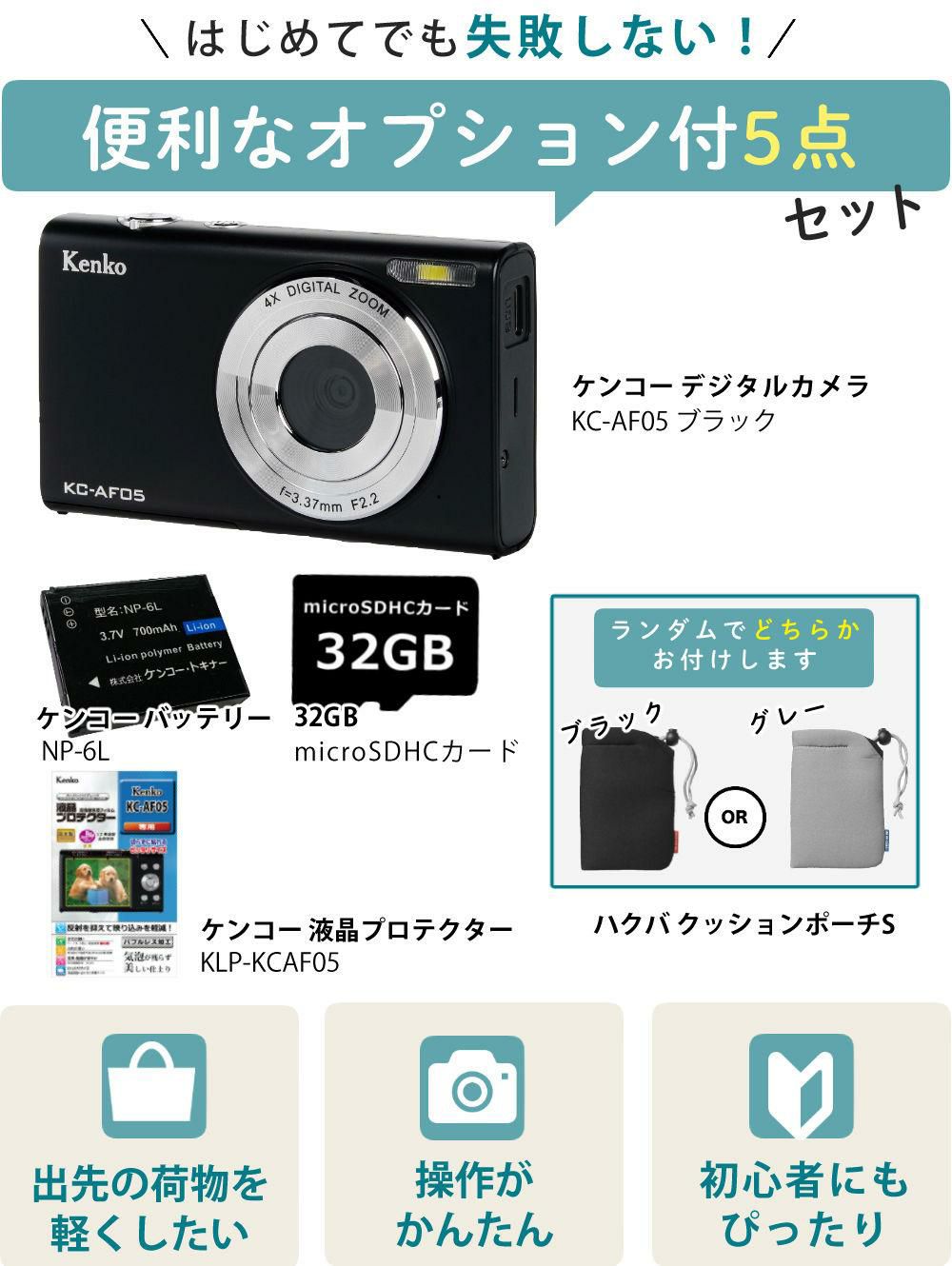 他の画像を見る 一緒に出掛けるおさんぽカメラ スマホ苦手なお年寄り、修学旅行に持っていきたい小中学生にオススメ Kenko ケンコー デジタルカメラ KC-AF05 ブラック SD・ポーチ・予備バッテリー・液晶保護フィルム付き 5点セット 販売価格 ¥ 13,990 税込 在庫切れ 詳細を見る お気に入りに登録する (0件)