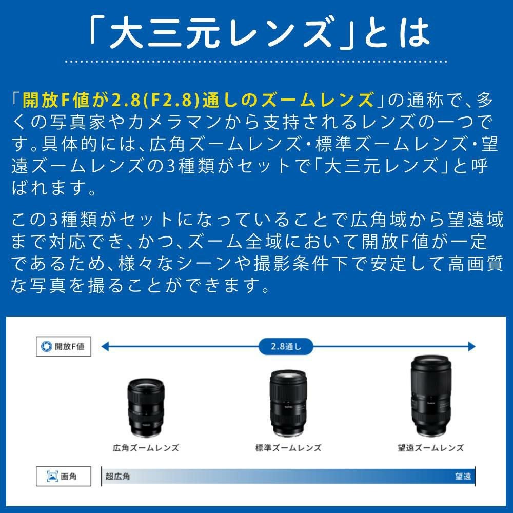 他の画像を見る (広角ズーム・標準ズーム・望遠ズームの3本セット) タムロン 大三元レンズ ニコンZマウント用 レンズ3本&フィルター&バッグ付き セット (ラッピング不可) 販売価格 ¥ 406,000 税込 在庫切れ 詳細を見る お気に入りに登録する (0件)