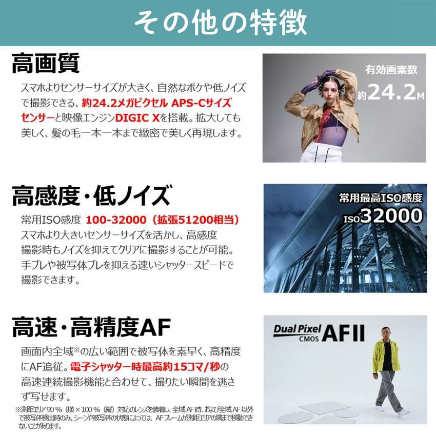 他の画像を見る ズーム制御 被写体追従 初心者向け コスパモデル 映像クリエイター 被写体 キヤノン デジタルミラーレス一眼カメラ EOS EOSR50V レンズキット+トライポッドグリップ+フィルム+SDカード等 7点セット 販売価格 ¥ 157,700 税込 在庫切れ 詳細を見る お気に入りに登録する (0件)