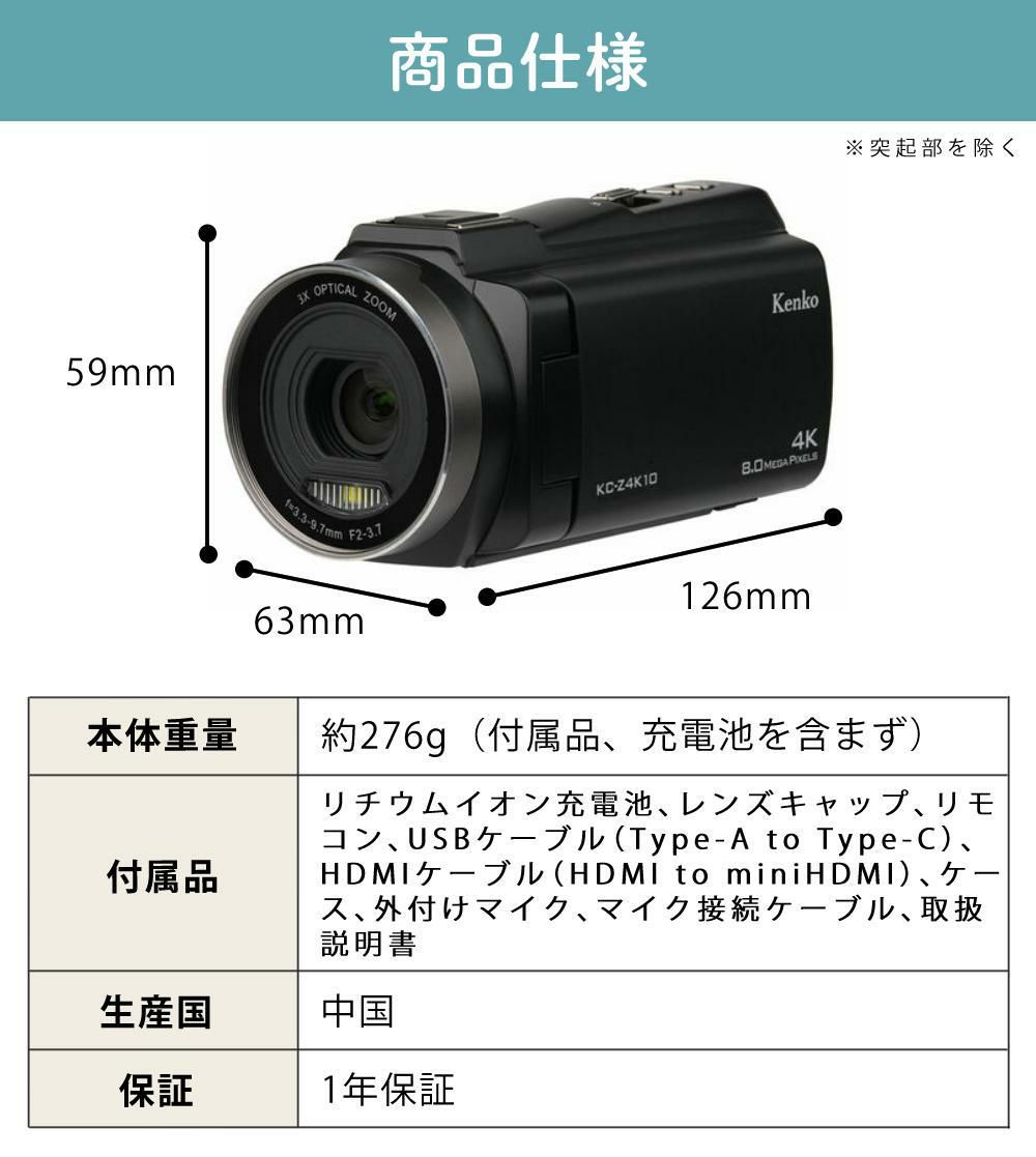 他の画像を見る 4Kビデオカメラ、光学3倍ズーム、タッチパネル採用 ケンコー 4K ビデオカメラ KC-Z4K10 光学3倍ズーム タッチパネル 手ぶれ補正 ハンディカメラ 販売価格 ¥ 29,800 税込 カートに入れる お気に入りに登録する (0件)