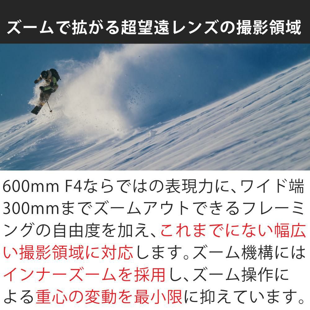 他の画像を見る 自由を叶える革新的大口径超望遠ズームレンズ (レビュー特典あり)シグマ 300-600mm F4 DG OS(S)ソニーEマウント用 受注生産品 ラッピング不可 販売価格 ¥ 1,178,917 税込 カートに入れる お気に入りに登録する (0件)