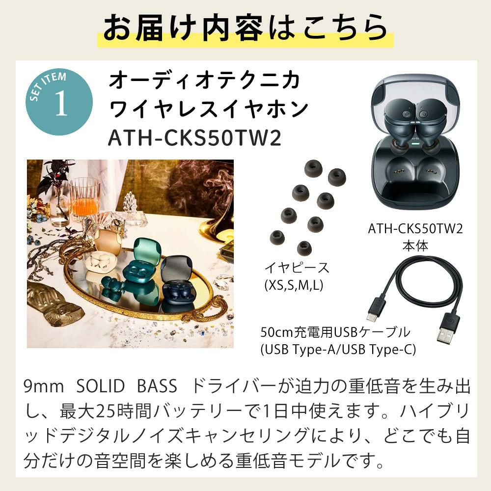 オーディオテクニカ ワイヤレスイヤホン 完全ワイヤレスイヤホン ブラック/ベージュ/グリーン ATH-CKS50TW2 AT-ER500付 3点セット(ラッピング不可)