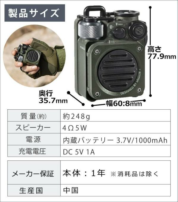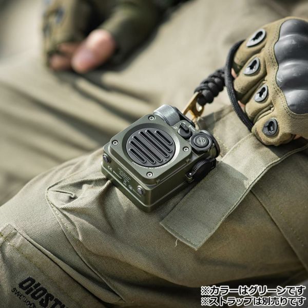 ●ミリタリースタイルなデザインを採用しました。弾薬箱、カモフラージュなど軍隊で使われる無線のようなワイルドなデザインに、金属の重厚さとマット塗装によりミリタリーな質感を再現しています。