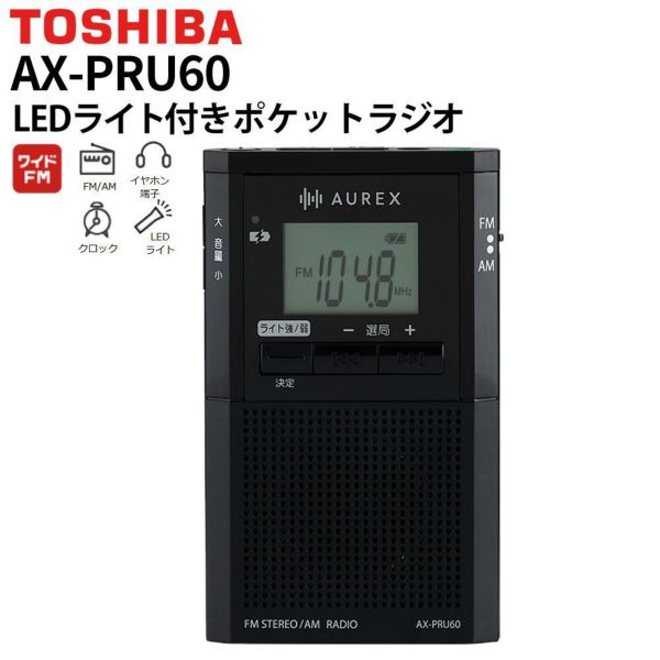 東芝 ポケットラジオ LEDライト付き AX-PRU60(K)ブラック