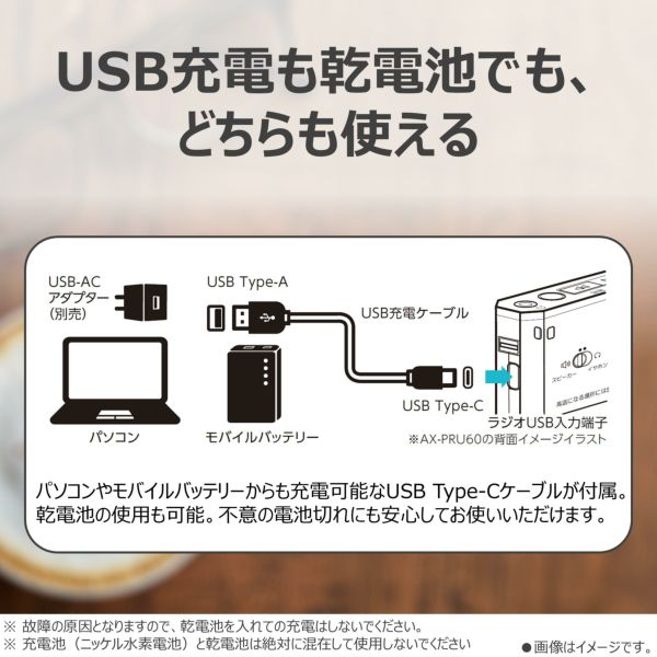 長時間 LEDライト搭載 の LEDライト付き ポケットラジオ 「 AX-PRU60 」 は、 USB充電 と 乾電池 の どちらでも 使える ポータブル ラジオ です。 ワイドFM や AMFM / FM/AM 受信 に対応 し、 緊急時 や 日常 の 情報収集 に 便利。 イヤホン端子 付き で 好み の イヤホン と 接続 可能。 コンパクト で 軽量 な ボディ に クロック 機能 も 搭載 し、 防災 用 や アウトドア でも 活躍 する 便利 な LEDライト付きラジオ です。