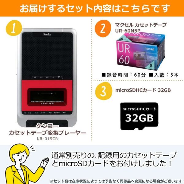 (カセットテープ&microSDHCカード32GB付) ケンコー ポータブル カセットテープ変換プレーヤー KR-019CR カセットテープ&microSDHCカード付き 3点セット