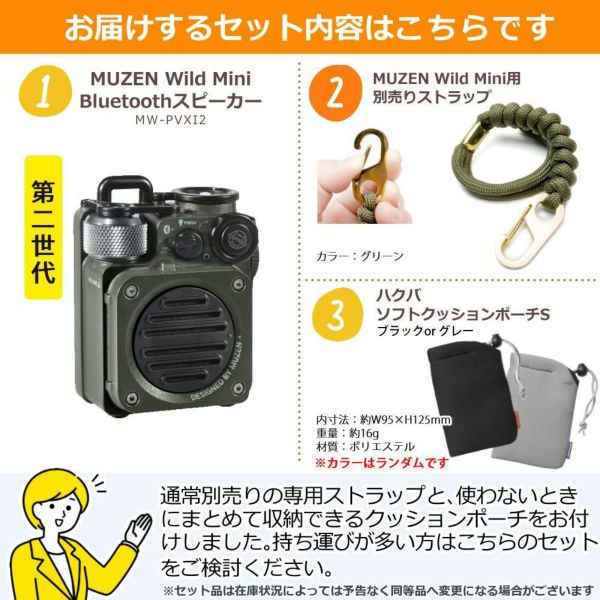 MUZEN Wild Mini Bluetoothスピーカー 第2世代 MW-PVXI2 ジャングルグリーン ストラップ&ポーチ付き セット