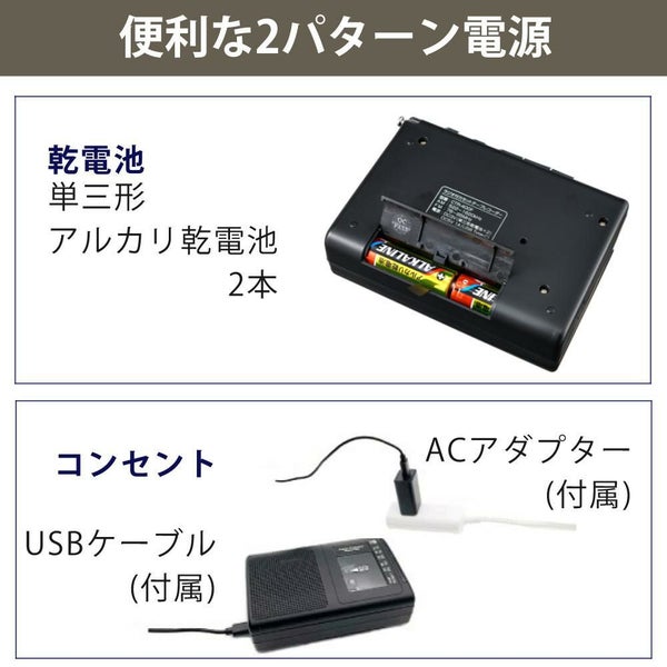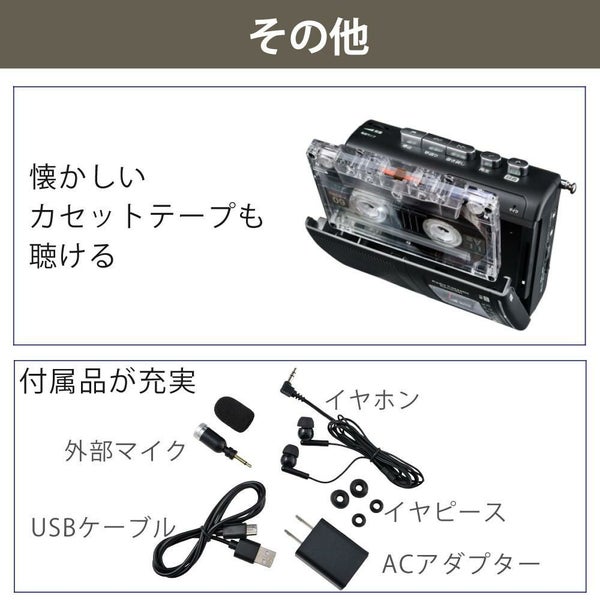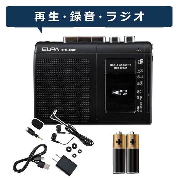 検索ワード:CTR?400F ELPA ラジオ付 カセットテープレコーダー AM FM カセットレコーダー 録音 再生 聴くモノラル USB Type-C アダプター 付属品 外部マイク